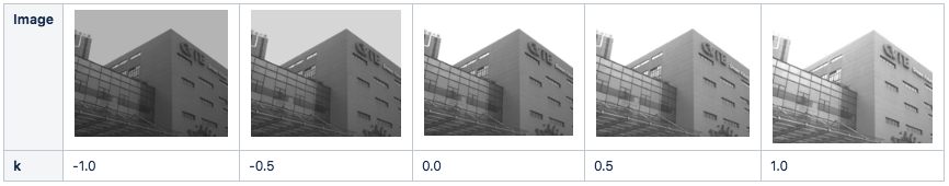由上图可以看出,当\(k\)为负数并且越小时,光圈值越小,曝光量越少,图片越暗;当\(k\)为正数并且越大时,光圈越大,曝光量越多,图片越亮(\(k=0\)时表示原图)。我们可以对原图\(I\)进行一系列的\(f_{F-stop}\)操作,模仿由于快门时间变化而对曝光量所造成变化。在我们的程序中,\(k\)值设置为-1, -0.5, 0, 0.5, 1。